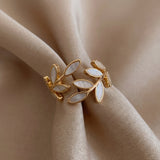 ALBA| Anillo con Hoja y Ópalo Blanco